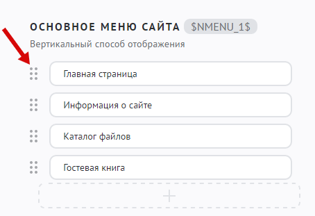 Изменить порядок пунктов в меню можно, перетащив его за точки с левой стороны от формы: