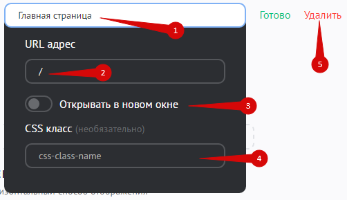 Когда закончите редактирование пункта меню, нажмите на ссылку «Готово».