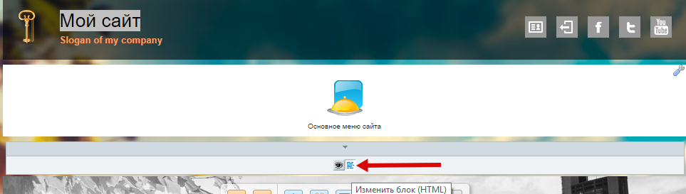 Другой способ разместить меню на сайте, включив конструктор из панели инструментов сайта, — отредактировать HTML-код глобального блока: