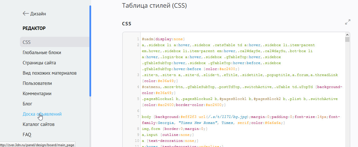 Работа с дизайном: редактирование шаблонов