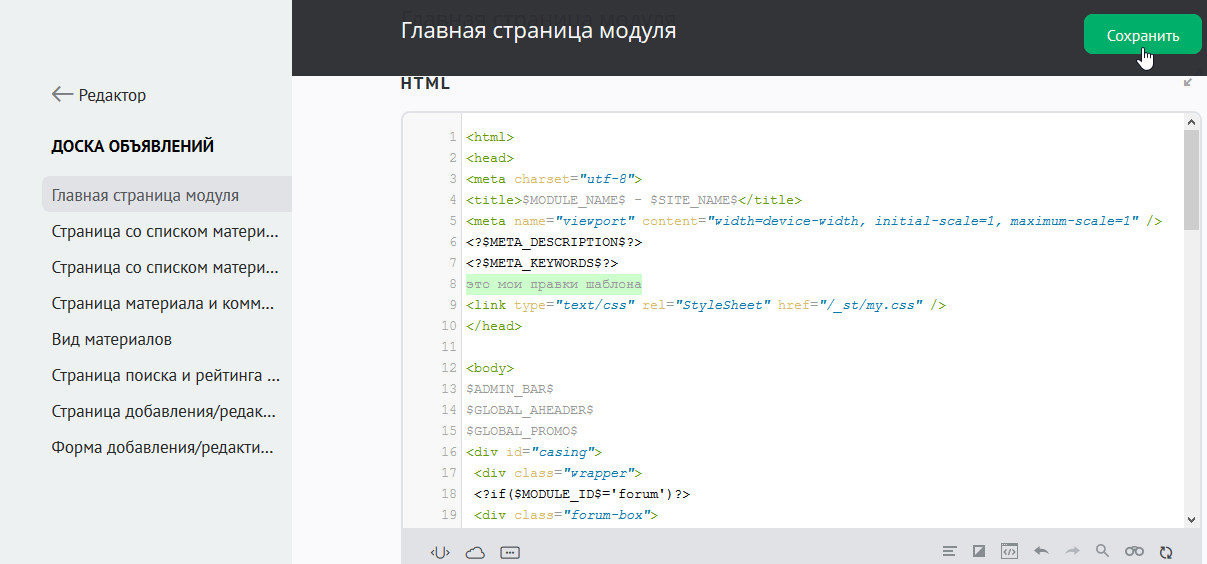 - Редактирование шаблонов в панели управления сайтом