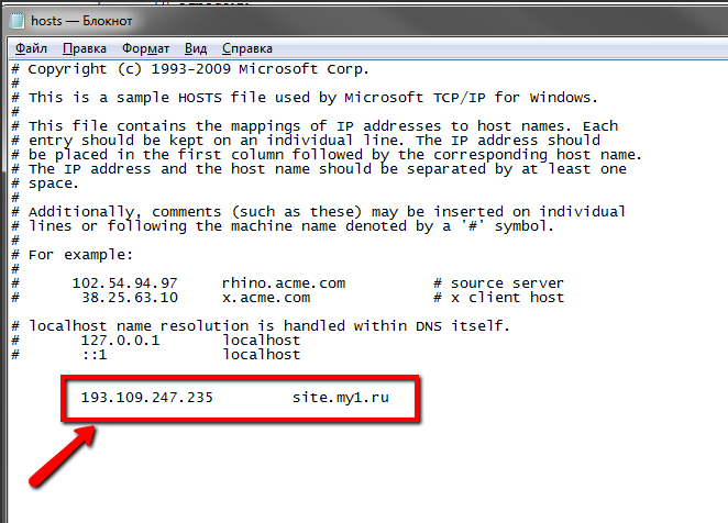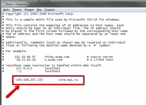 где xxx.xxx.xxx.xxx – IP-адрес сервера вашего сайта, site.ru – доменное имя вашего сайта.