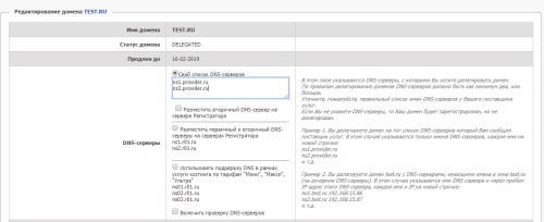 Делегирование домена необходимо для его использования в Интернете. Работа делегированного домена обеспечивается корректно указанными DNS-серверами.
