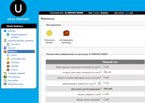 - Пополнение баланса на domain.ucoz.com