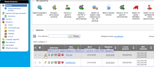 - Передача доменов в зонах .ru, .рф, .su