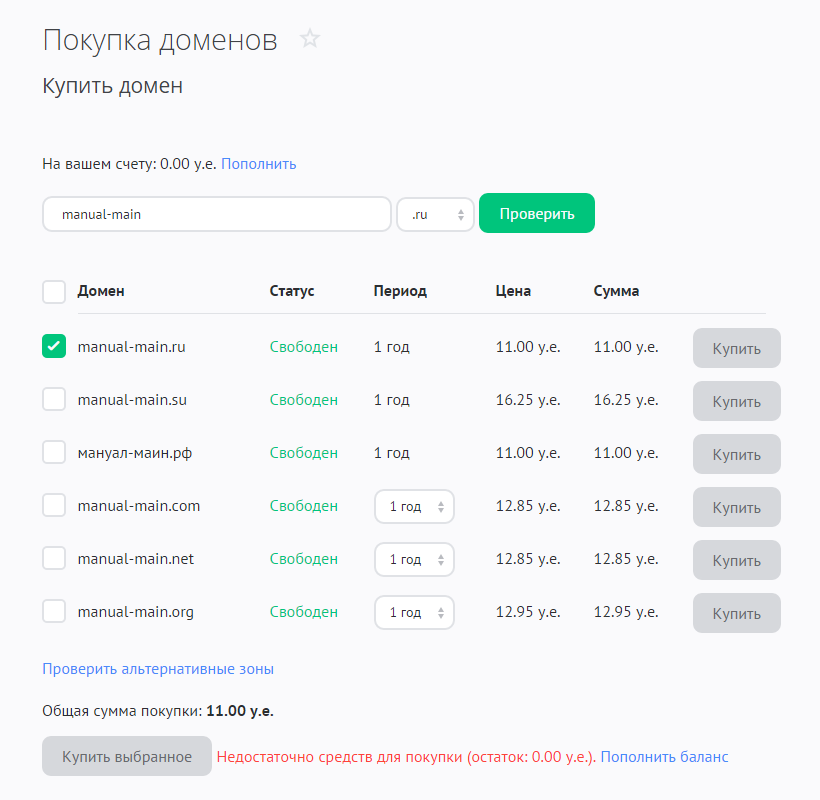 Покупка доменов