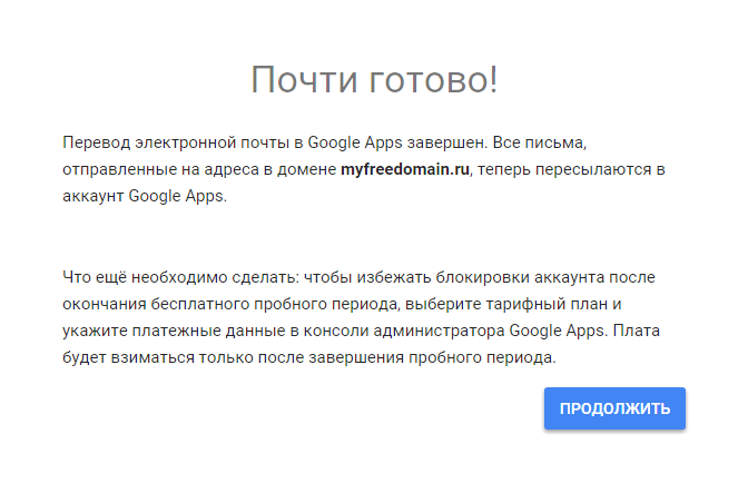 Теперь осталось выбрать тарифный план и произвести оплату. В течение пробного периода вы можете бесплатно принимать и отправлять почту для аккаунта, имя и пароль от которого указывали при регистрации.