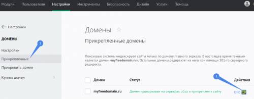Напротив строки с доменом кликните по ссылке «DNS»: