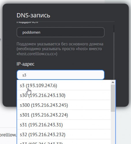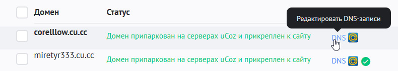 Созданный поддомен появится в списке “Изменяемые записи”.