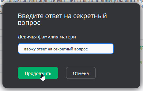 Для смены статуса домена требуется ответ на секретный вопрос.