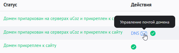 - Первый прикреплённый к сайту домен автоматически становится основным