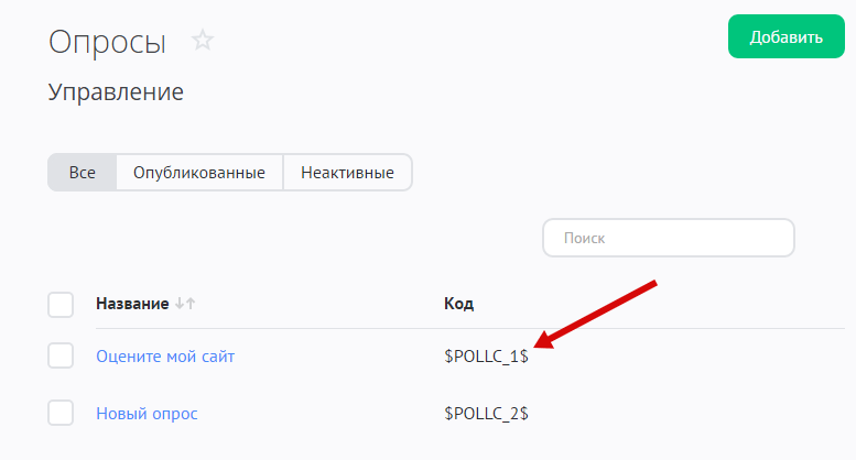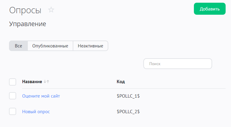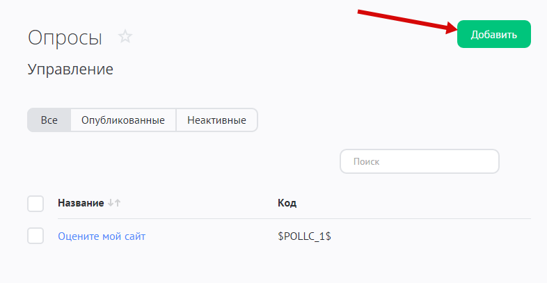 Чтобы создать новый опрос, нажмите на кнопку «Добавить»: