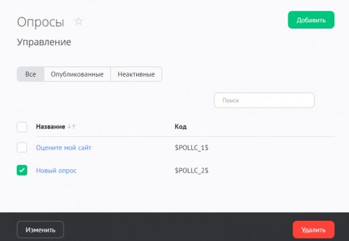 Любой опрос может быть отредактирован или удален. Для этого отметьте опрос в списке и выберите желаемое действие: