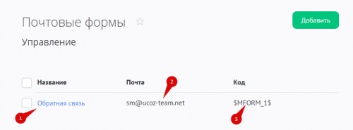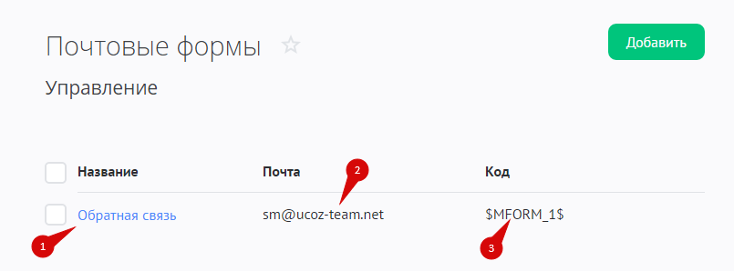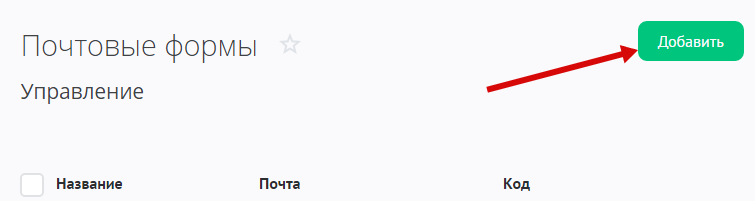 Чтобы создать новую почтовую форму, нажмите на кнопку «Добавить»: