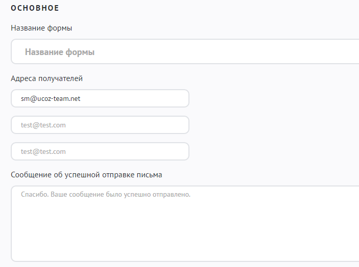 - Адреса получателей. Вы можете указать до трех адресатов, которые смогут получать запросы пользователей и видеть содержимое полей, заполненных пользователями.