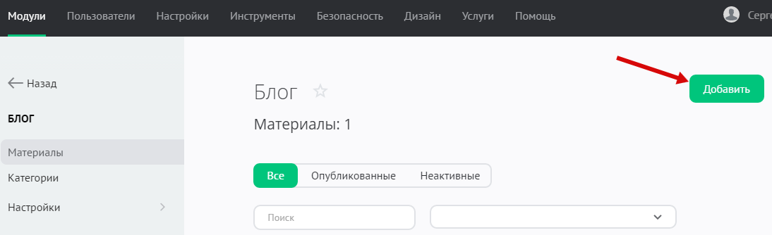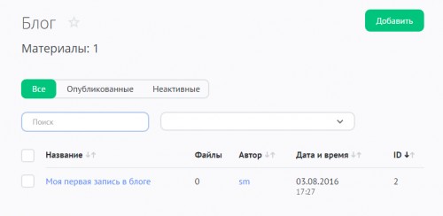 На странице добавления материала нужно ввести запись и нажать на кнопку «Добавить» и запись появится на сайте.