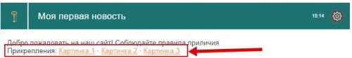 - Показать прикрепленные изображения. С помощью переменной $ATTACHMENT$, которая размещается в шаблоне, можно вывести список всех изображений, которые были прикреплены к записи