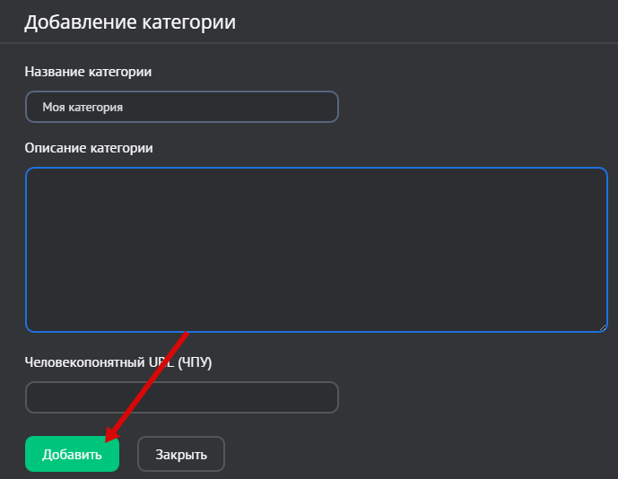 Нажмите на кнопку «Добавить», чтобы категория появилась на сайте: