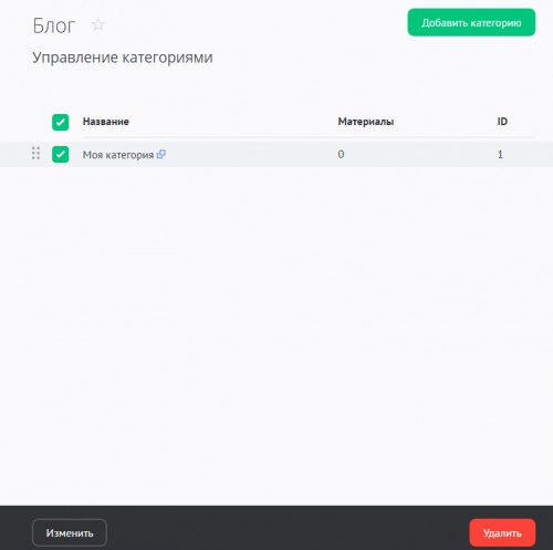 После добавления категории может появится потребность ее изменения или удаления. В панели управления сайтом перейдите в раздел модуля «Блог» - «Категории»: