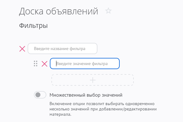 Опция «Множественный выбор значений» позволит выбирать несколько значений фильтра на странице добавления объявлений: