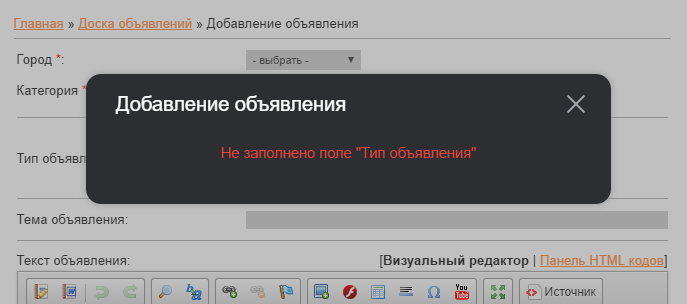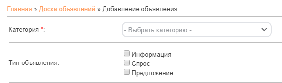 Теперь, когда появилась возможность задавать фильтр для материала, давайте взглянем, как это выглядит на странице добавления объявления.
