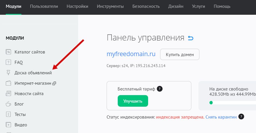 С помощью модуля «Доска объявлений» администратор сайта сможет: