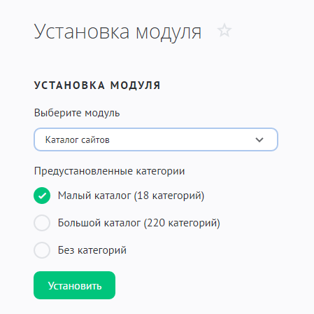 Выберите модуль «Каталог сайтов» и укажите предустановленные категории:
