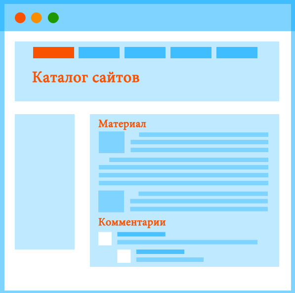 Главная страница содержит перечень кратких обзоров добавленных в каталог сайтов. За отображение перечня отвечает переменная $BODY$. Количество материалов в перечне регулируется настройкой «Количество отображаемых материалов».