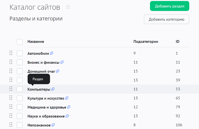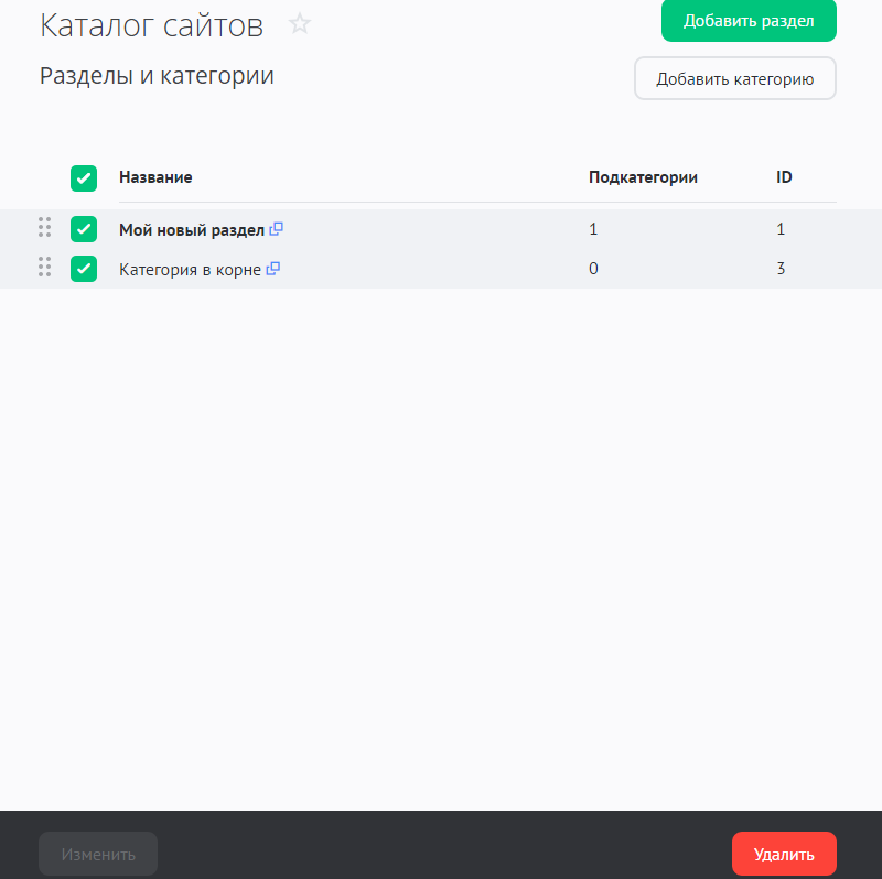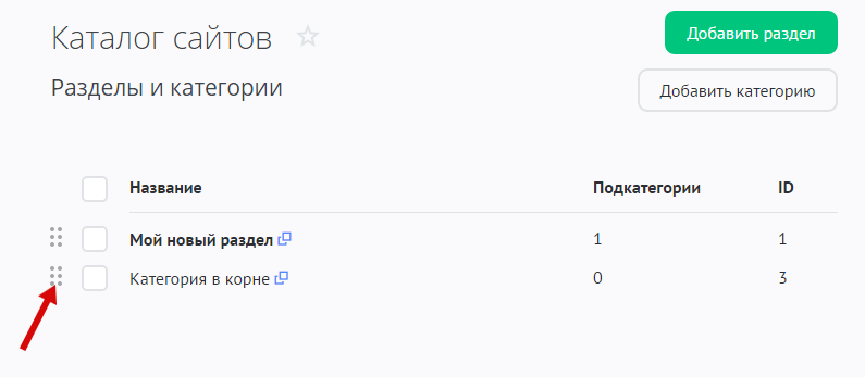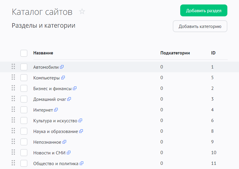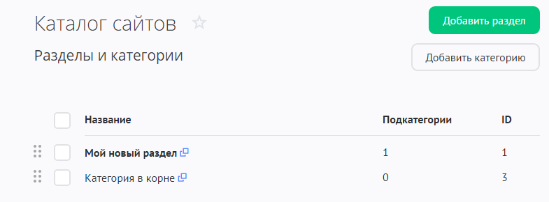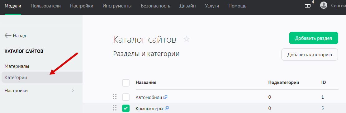 В этой инструкции мы расскажем, как управлять разделами и категориями в модуле «Каталог сайтов».