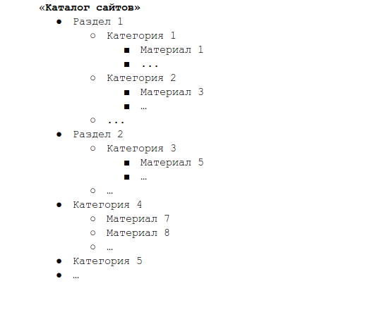 Вот как может выглядеть структура модуля «Каталог сайтов»: