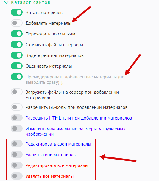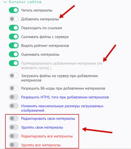 Больше о правах пользователей читайте в инструкции Права пользователей в модуле «Каталог сайтов».