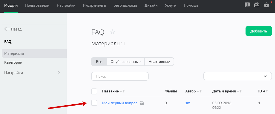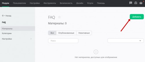 Как добавить материал в модуль «FAQ (Вопрос/Ответ)»