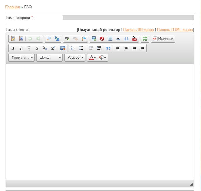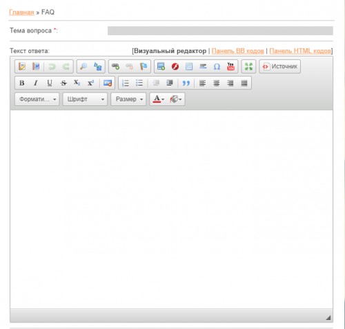 Откроется страница добавления материала в модуль «FAQ»: