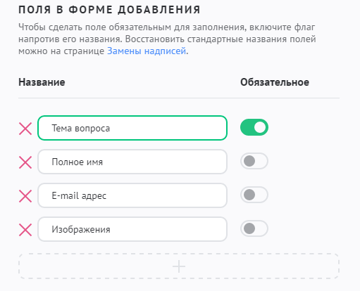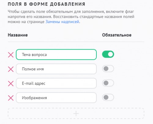 Чтобы изменить состав полей при добавлении материала, зайдите в настройки модуля «FAQ» и в разделе «Материалы» добейтесь желаемого результата: