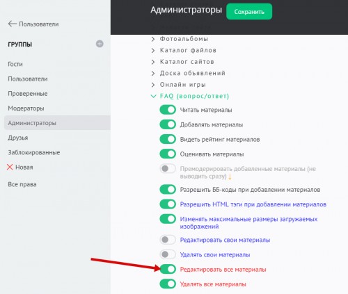 - Материал недоступен для просмотра (премодерация). Включает/отключает возможность просмотра материала пользователями. При включении данной опции материал после добавления неактивен (скрыт).