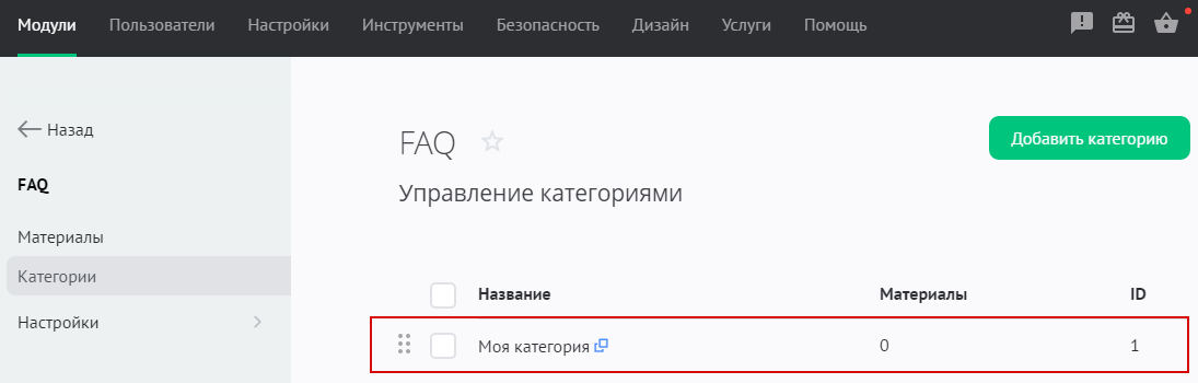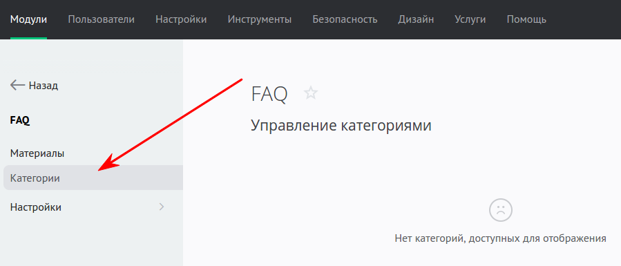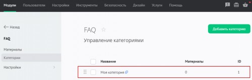 Управление категориями в модуле «FAQ (Вопрос/Ответ)»