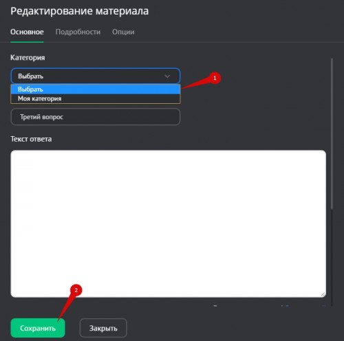 Важно! Вместе с категорией удаляются и все добавленные в нее материалы.