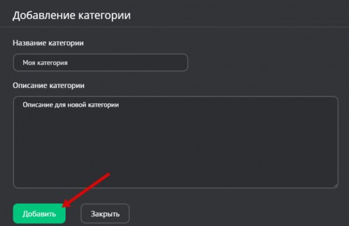 Нажмите на кнопку «Добавить», чтобы категория появилась на сайте: