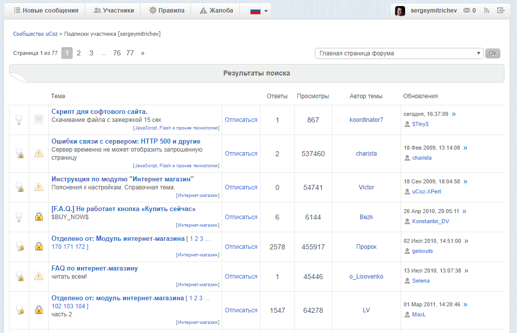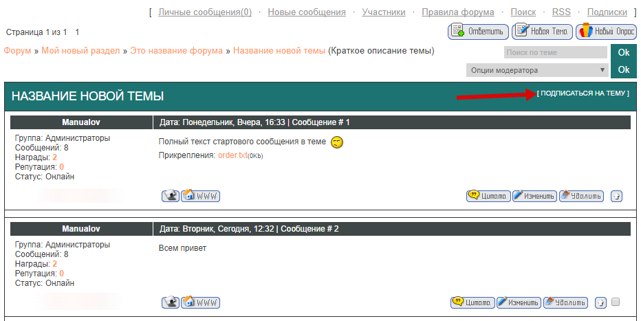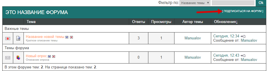 Откроется страница //example.com/forum/0-0-1-46, где пользователи могут управлять своими подписками: