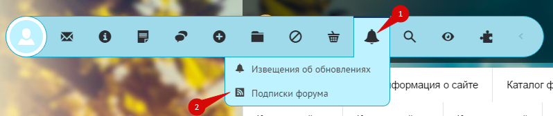 Для управления подписками на темы в панели инструментов сайтом выберите «Уведомления» / «Подписки форума»: