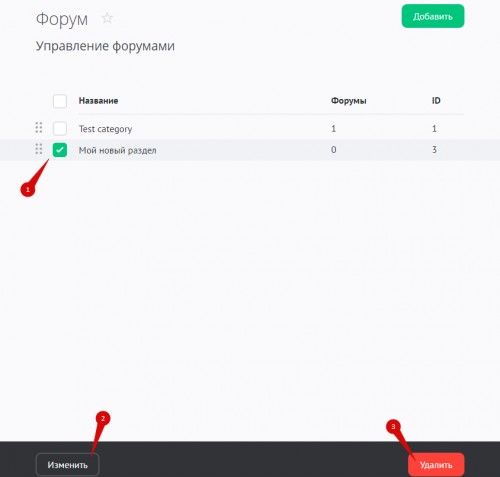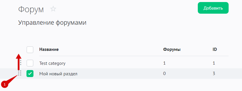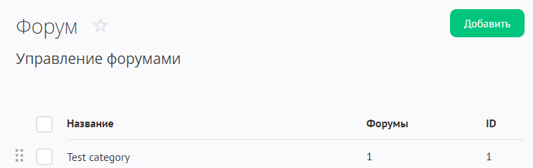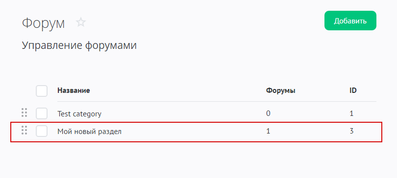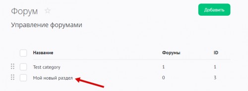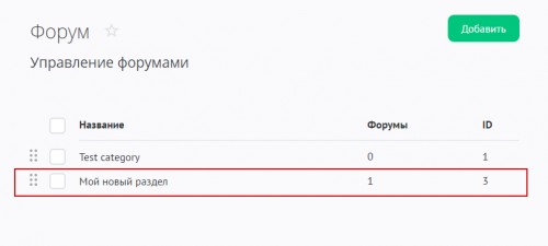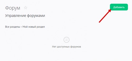 Раздел может быть добавлен только в корень структуры форумов. Поэтому, если вы перейдете в один из разделов или форумов, создать раздел уже не получится. Кнопка «Добавить» в таком случае будет открывать окно добавления форума или подфорума.