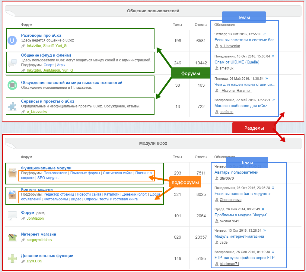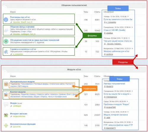 Рассмотрим структуру модуля «Форум» на примере http://forum.ucoz.ru .
