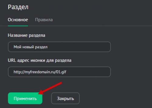 После ввода информации о разделе нужно нажать на кнопку «Применить»: