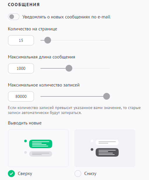 - Выводить новые сообщения сверху или снизу.