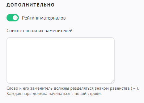 - Список слов и их заменителей. Данный инструмент автоматически производит замену слов во всех публикуемых сообщениях. Слово и его заменитель должны разделяться знаком равенства ( = ). Каждая пара должна начинаться с новой строки.
