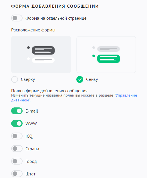 Настройки модуля «Гостевая книга»