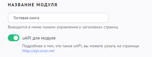 В этом же разделе активируется uAPI. Подробнее о том, что такое uAPI, вы можете узнать на странице http://api.ucoz.net