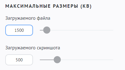С помощью данных настроек устанавливается ограничение на размер загружаемых файлов (10-15360 Кб) и скриншотов (5-2000 Кб).