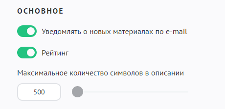 - Материал всегда сверху. Опция значительно увеличивает занятое дисковое пространство. Используйте опцию, когда это действительно необходимо. При включении настройки появляется опция «Материал всегда сверху» работает только в категориях, которая указывает системе учитывать флаг "Всегда сверху" только в категориях.