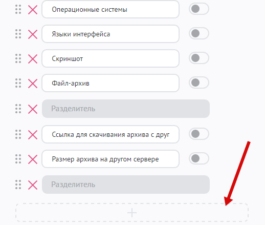 Чтобы добавить поле в форму, нажмите на иконку «+»: